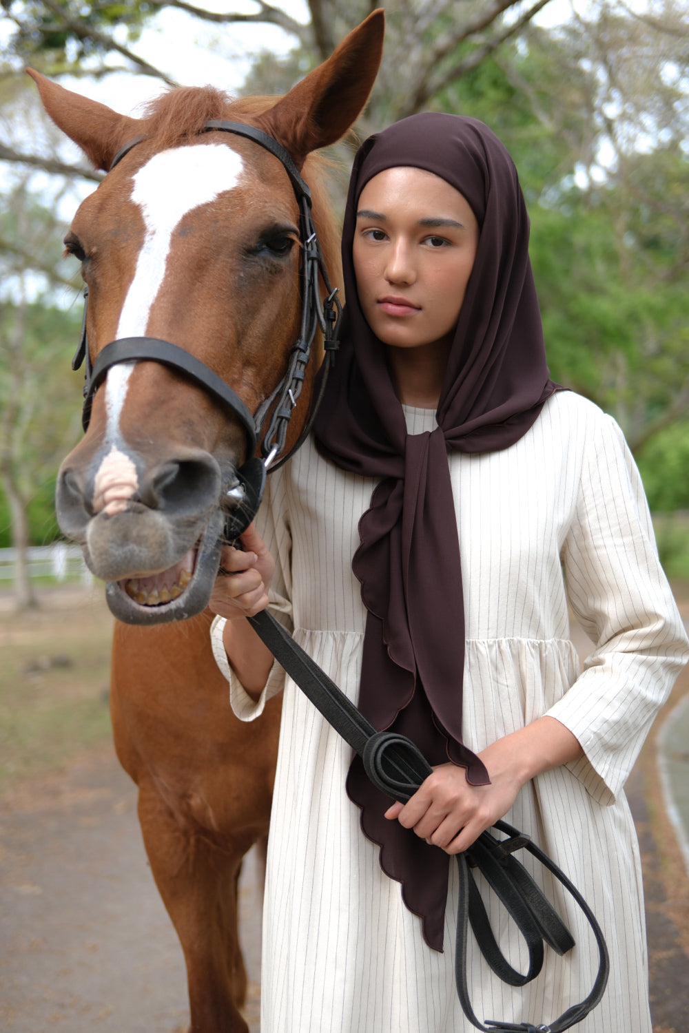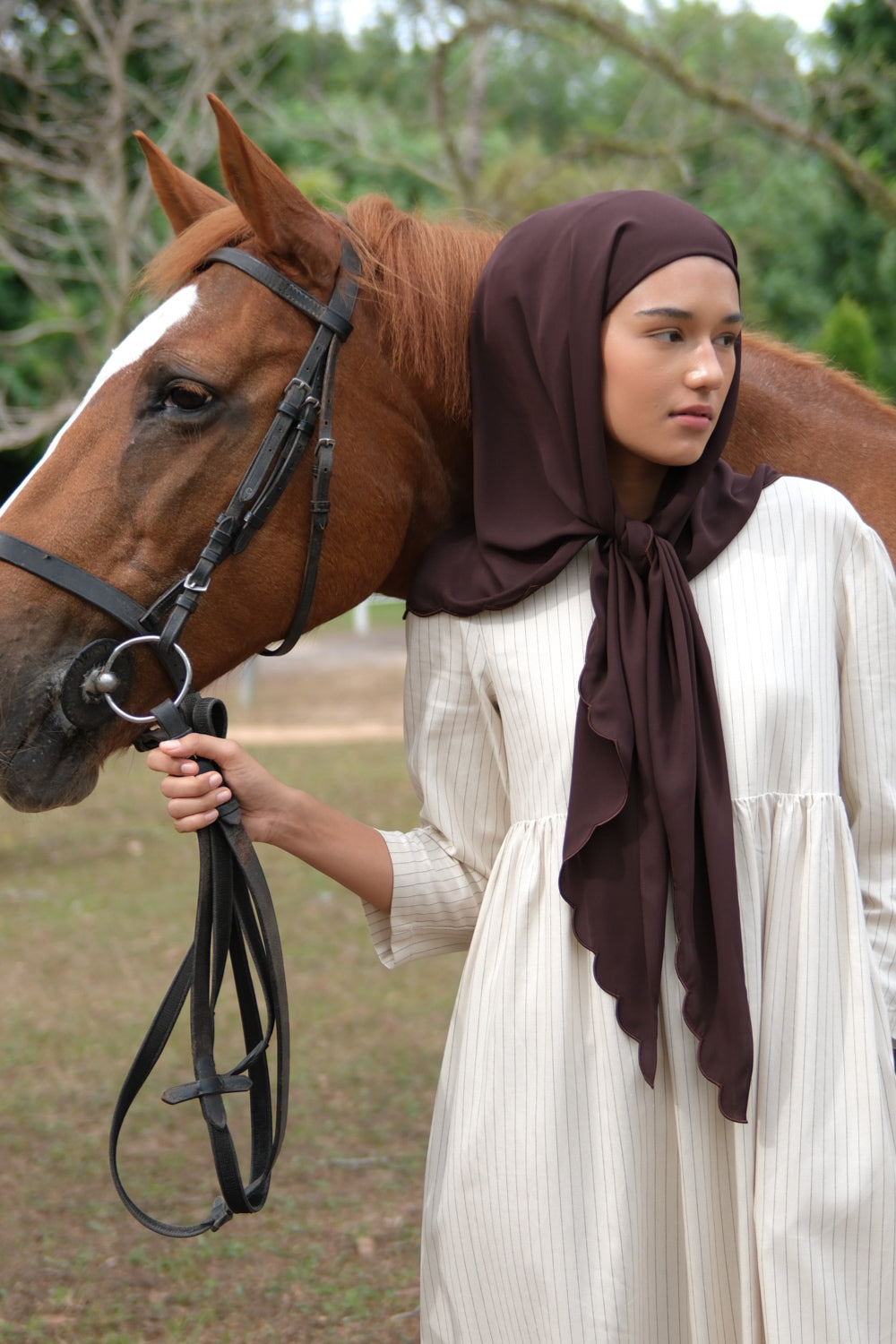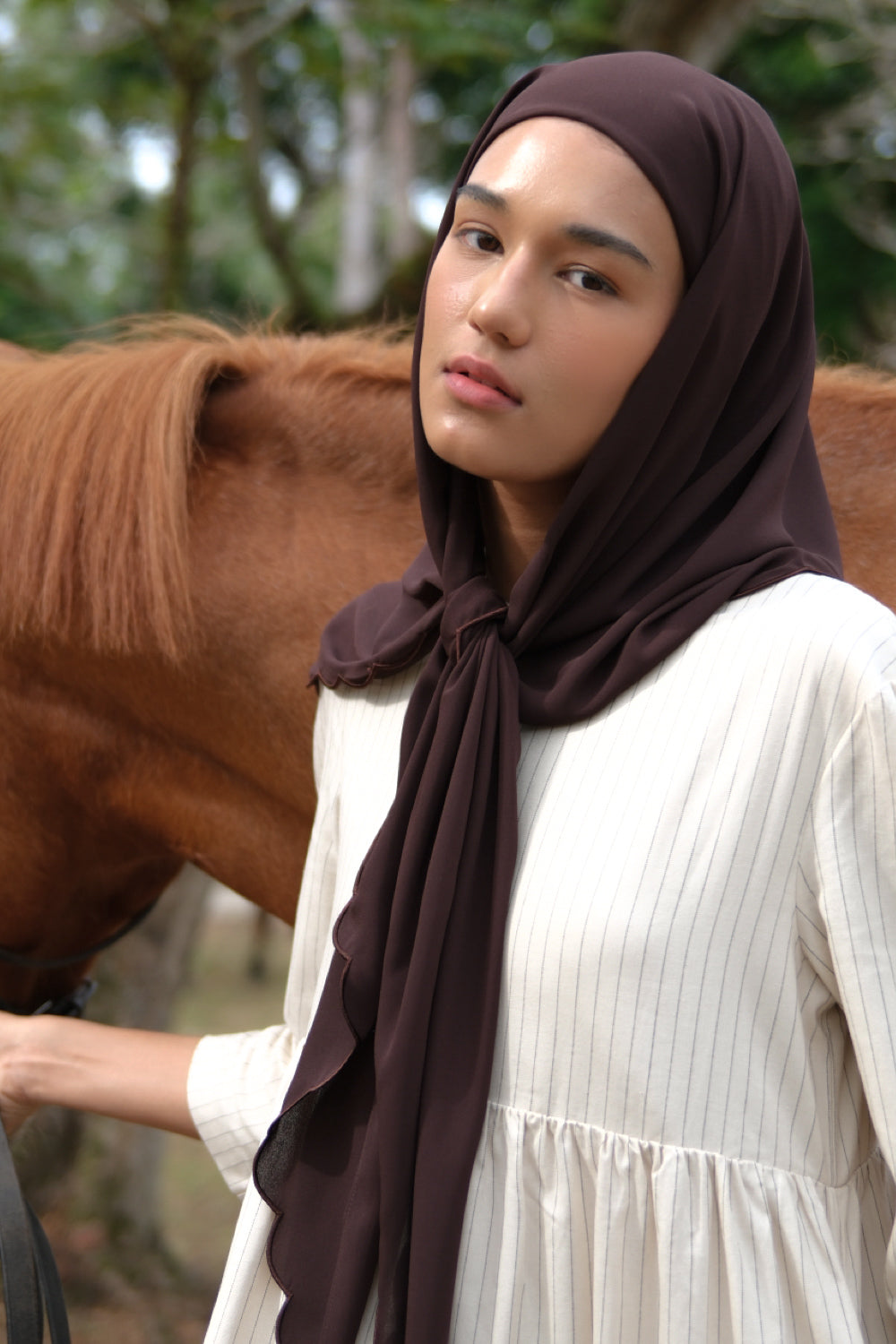 Instant Scallop Triangular Scarf 2.0 - Chocolate