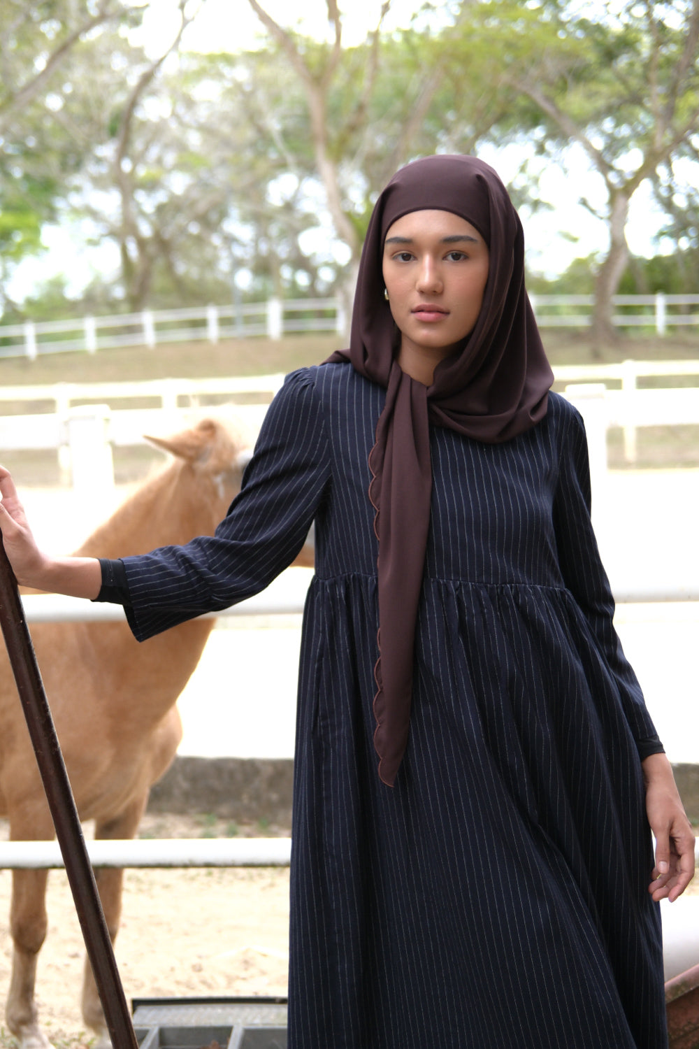 Comes with attached chocolate inner & tie string that match the scarf.