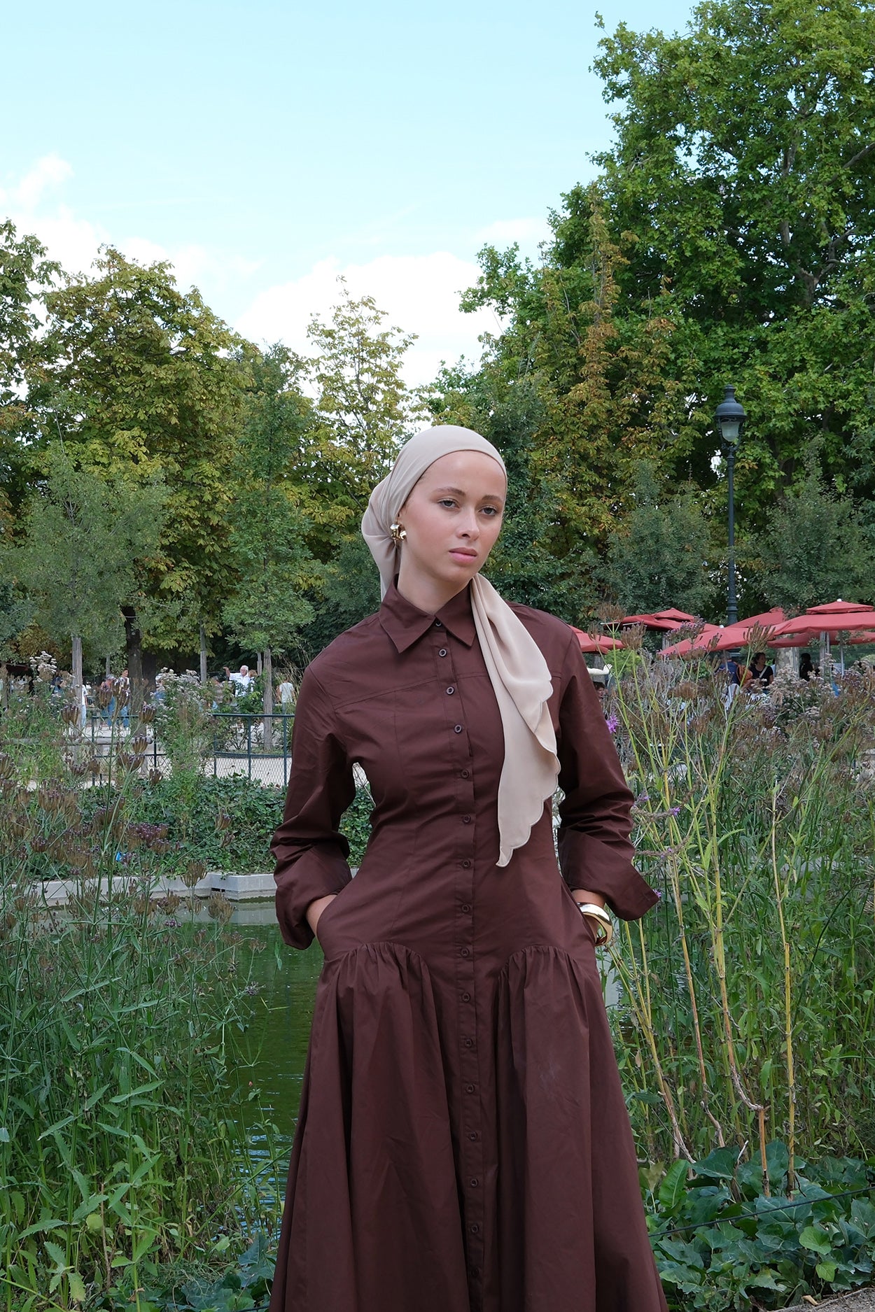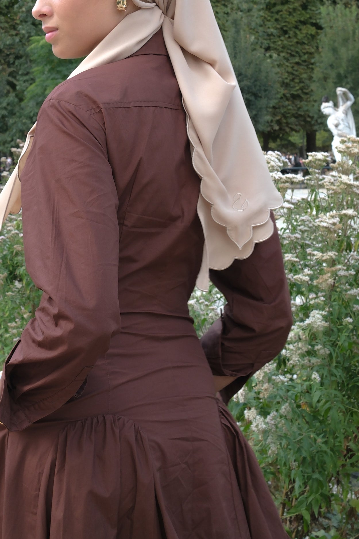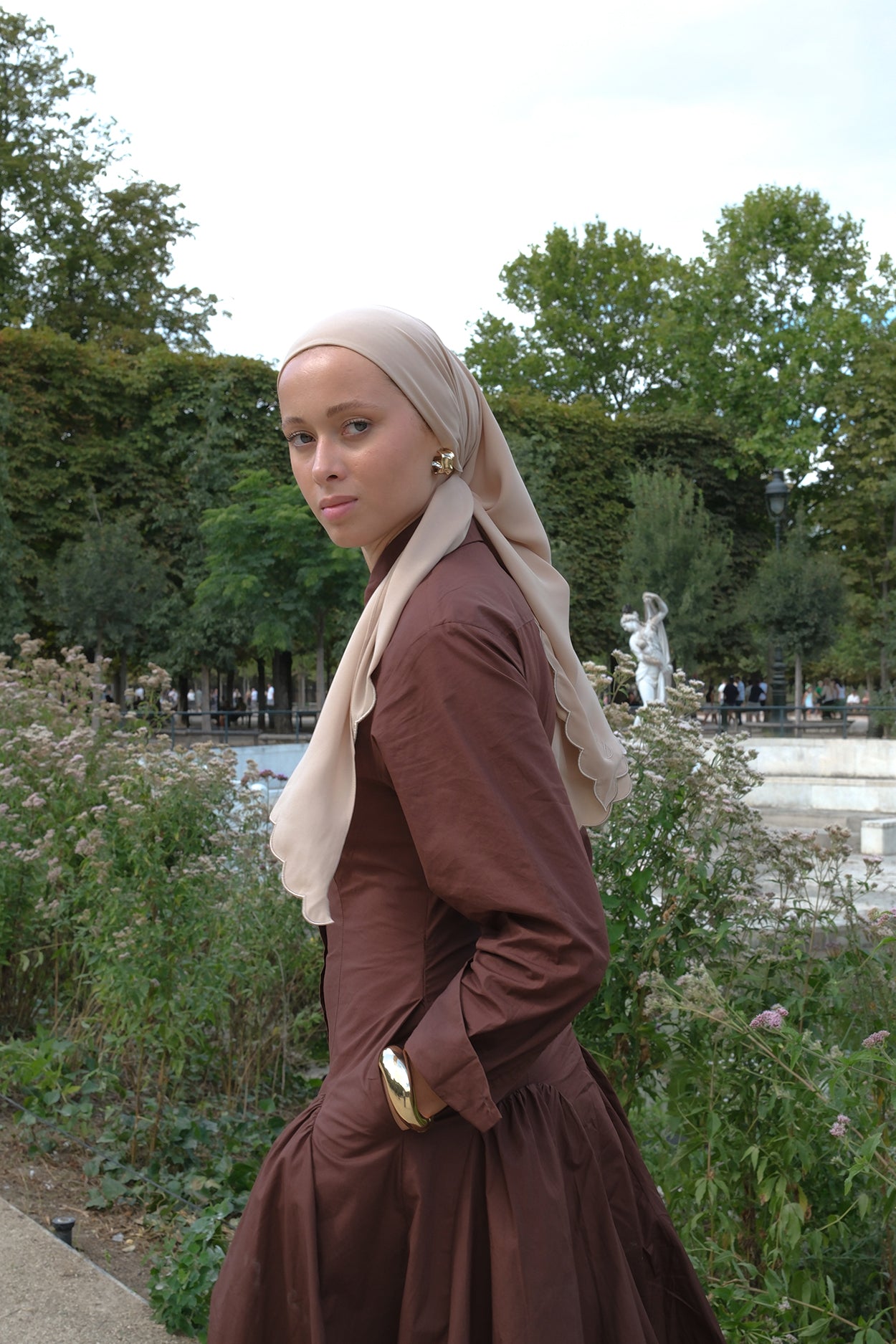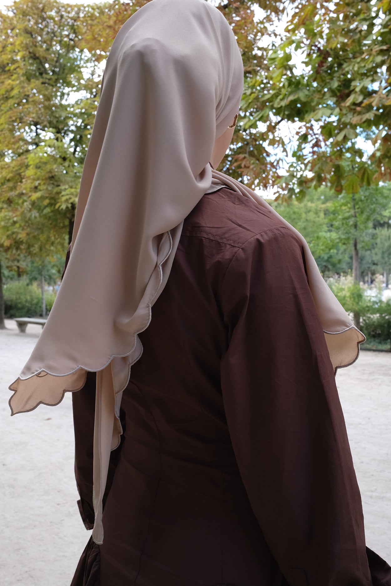 Comes with attached brown inner & tie string that match the scarf.