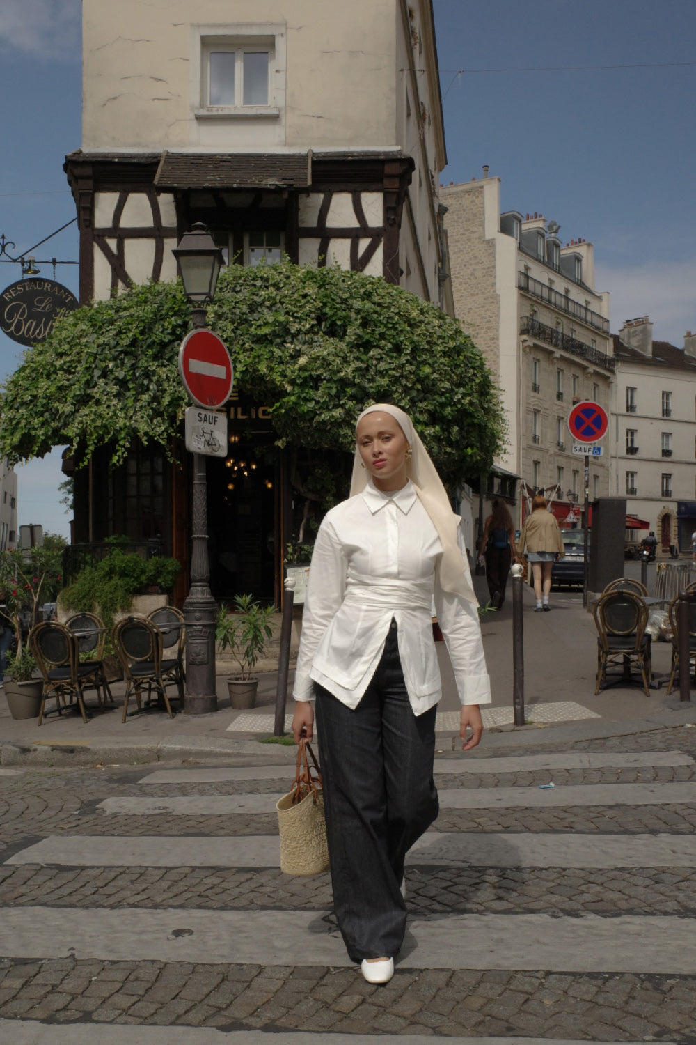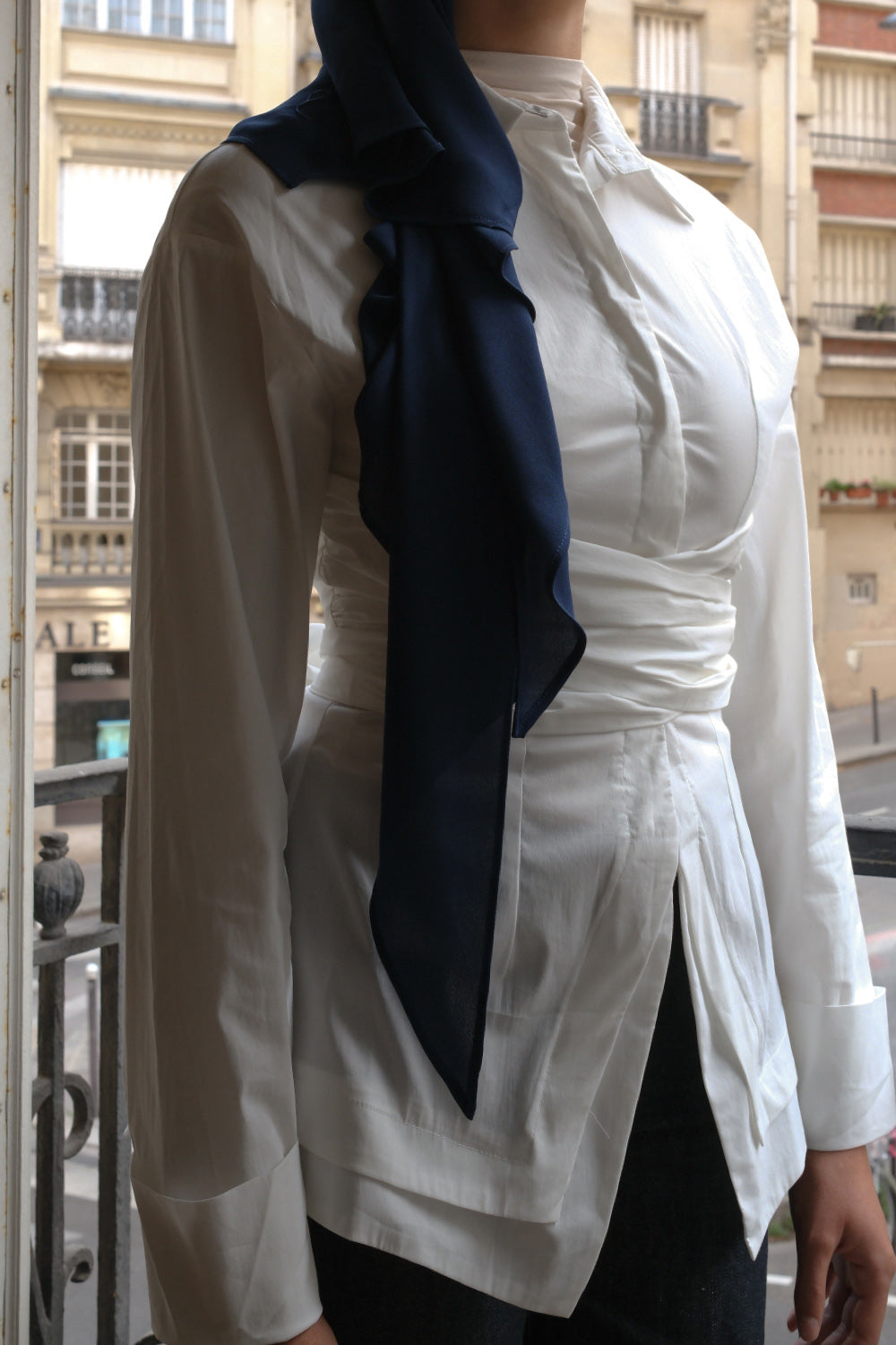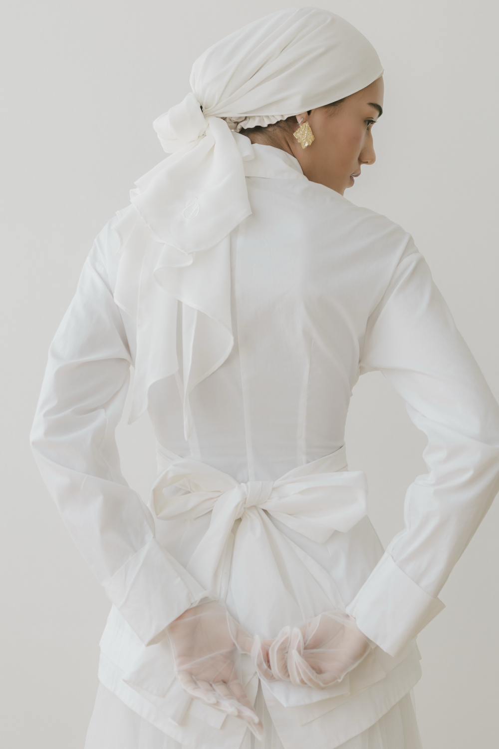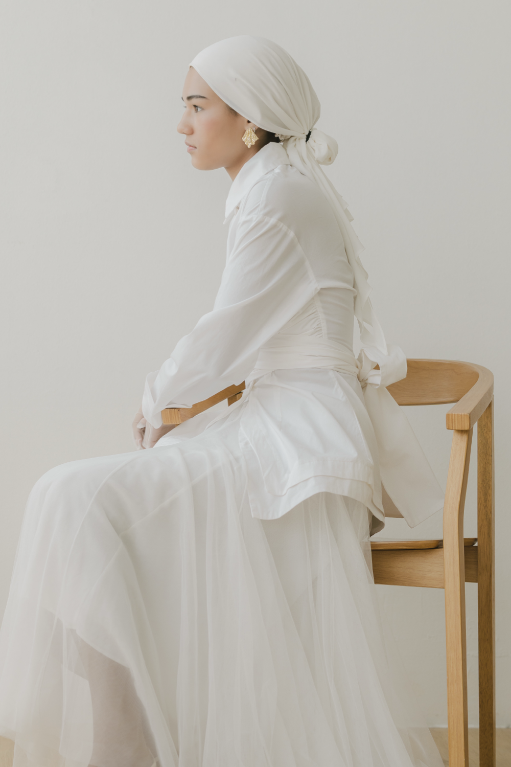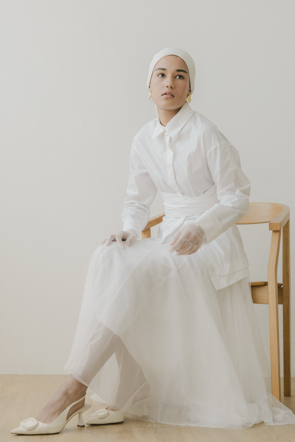 Functional front buttons. Folded cuffed sleeves. Double layer hem detailing.